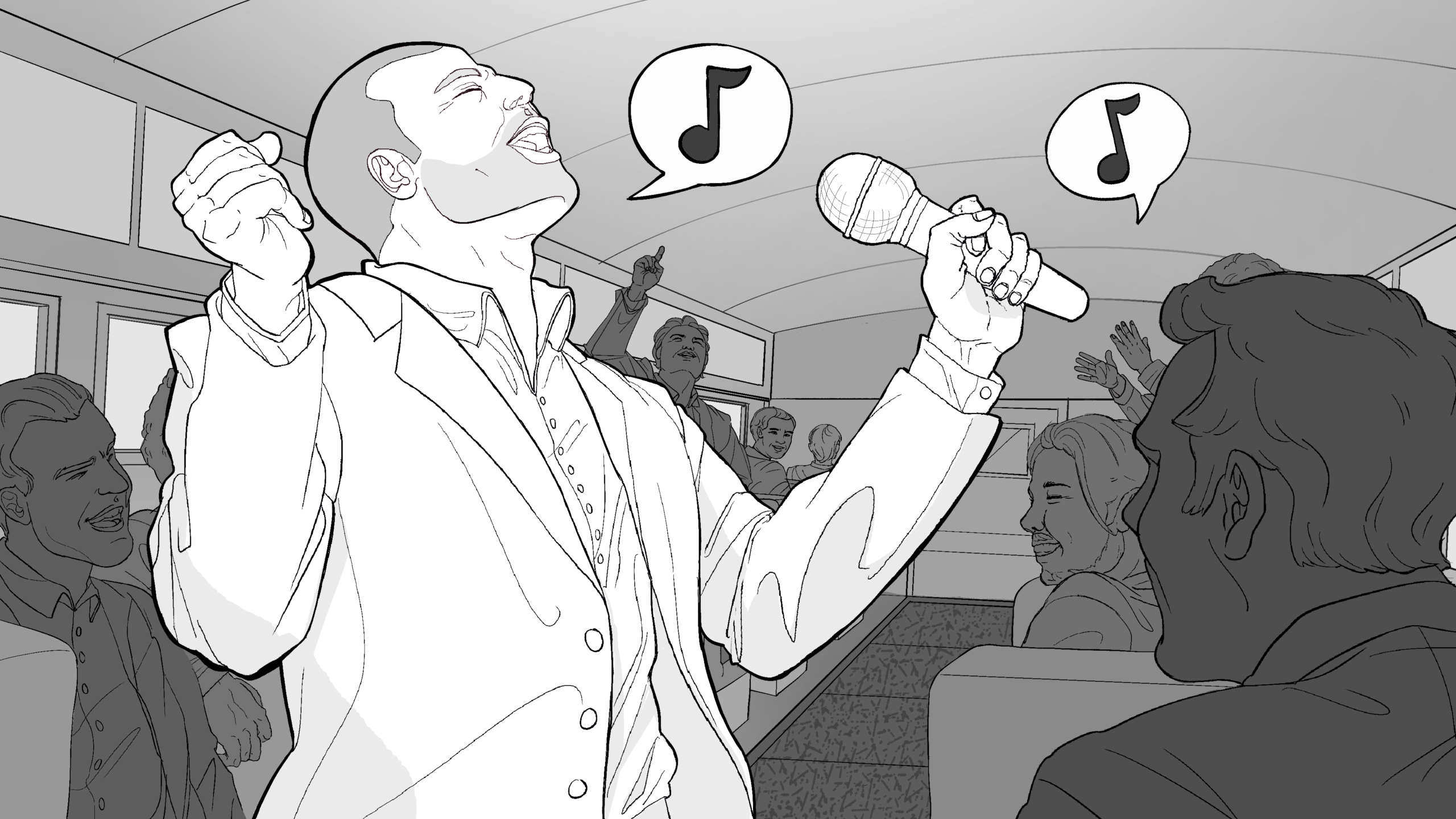 These drawings were requested in a comic book style, and were given heightened lighting to accentuate his contemplative and passionate nature. Any changes made based on Rebel Road's requests were edited swiftly and cleanly.